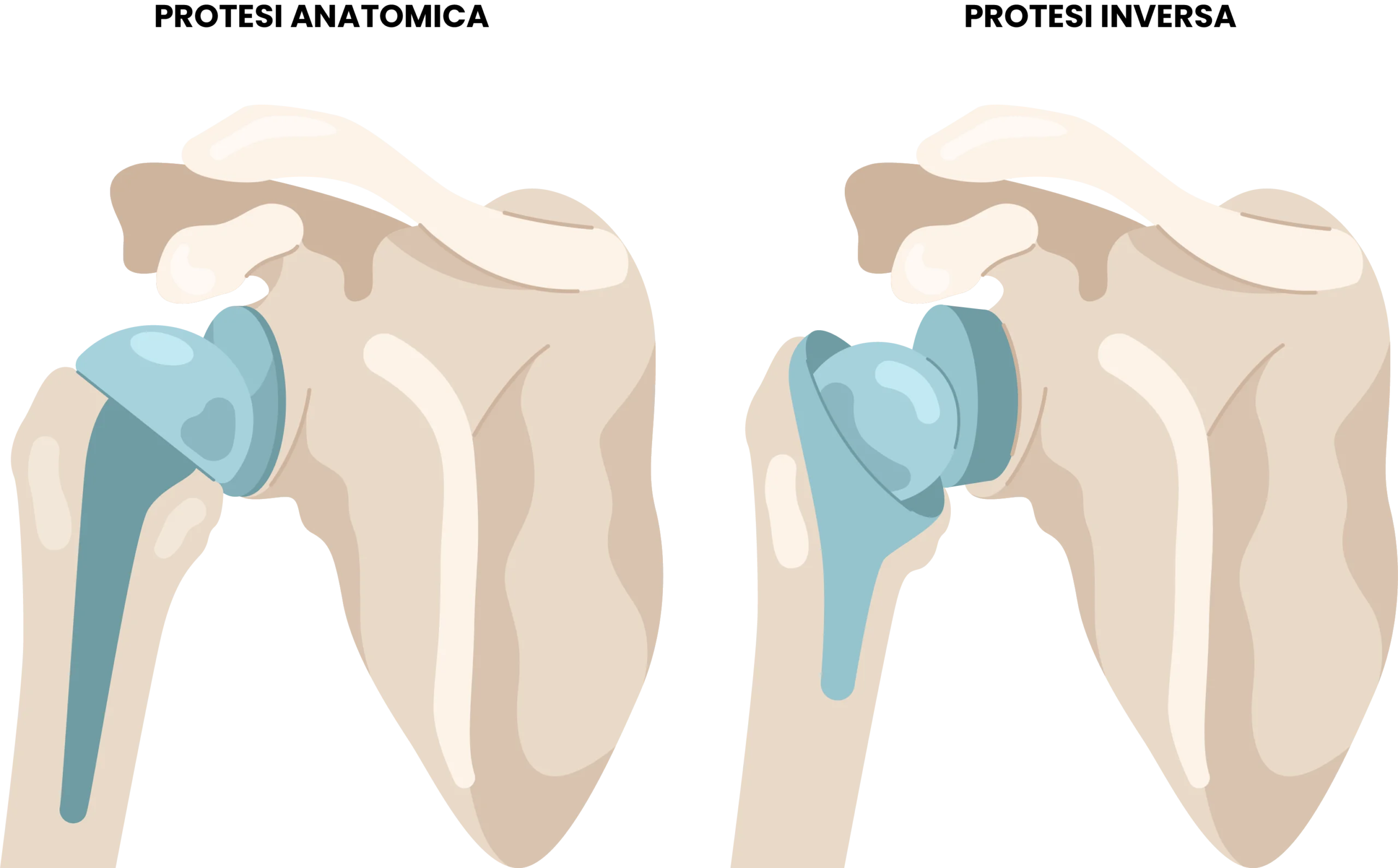 • Funzionalità: La protesi anatomica replica la funzionalità naturale della spalla, mentre la protesi inversa sfrutta il muscolo deltoide per compensare la perdita della funzione della cuffia dei rotatori.